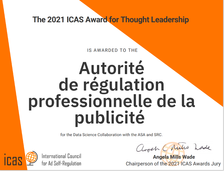 Le 15 juin 2021, l’International Council for Advertising Self-regulation/Conseil international pour l’autorégulation de la publicité (ICAS) – dont l’ARPP est un des membres fondateurs en 2016 – a annoncé les lauréats de sa deuxième édition des ICAS Global Awards. L’objectif de ces Prix internationaux ICAS est de récompenser les initiatives qui contribuent à des pratiques marketing responsables et à un système d’autorégulation plus efficace et plus impactant.