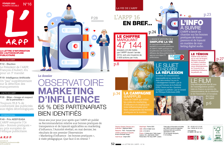 A noter en p. 51, les RDV de l’ARPP en 2020 : bloquez votre mercredi 3 juin 2020, date de notre Assemblée Générale, l’occasion de faire un point sur les grands sujets publicitaires communs !