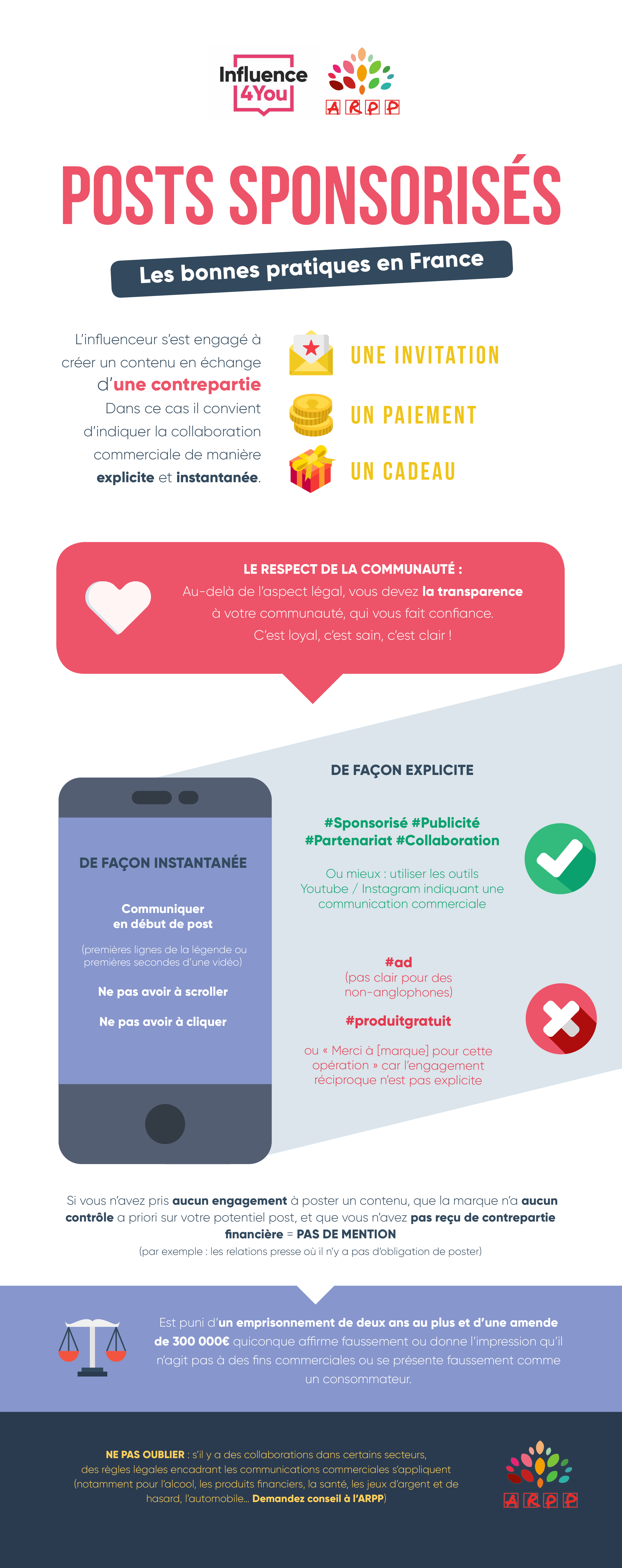 Dans le cadre de sa mission d’accompagnement des professionnels pour une publicité responsable, l’ARPP a réalisé avec son adhérent Influence4You, agence et plateforme spécialisée dans le marketing d’influence, une infographie destinée à aider les influenceurs à communiquer de manière responsable.