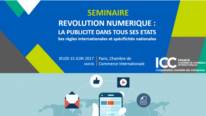 A l’occasion des 80 ans du code ICC sur les pratiques de publicité et de communication commerciale, le comité français de la Chambre de Commerce Internationale (ICC France) a le plaisir de vous inviter à participer au séminaire qu’il organise le 15 juin matin au siège mondial de la Chambre de Commerce Internationale sur le thème :