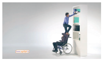 Notamment en “impulsant les bonnes pratiques managériales et de soutien à toutes les innovations. Quelques annonceurs ont réussi, à notre sens, ce pas supplémentaire vers l’inclusion. Par exemple, en valorisant la personne (« avant j’étais timide »), le handicap moteur rendu accessoire (Krys), en utilisant l’humour de Jamel Debbouze pour dédramatiser le sujet (Agefiph 2010), ou encore en valorisant avant tout la fonction professionnelle du cuisinier « star » (Grégory Cuilleron pour l’Agefiph), jusqu’à un chanteur valide (Stromae) qui prend place dans un fauteuil roulant et milite pour des festivals accessibles pour tous (« alors on danse ? ») ».
