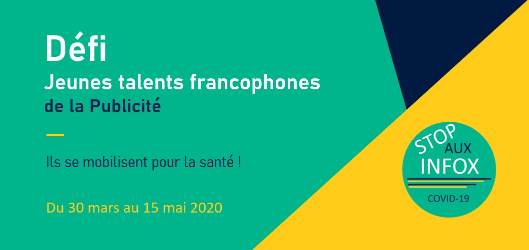 À compter du 30 mars 2020, L’Union francophone propose un nouveau défi aux jeunes talents francophones de la publicité afin de créer des campagnes de publicité « Stop aux Infox COVID-19 » via les réseaux sociaux.
