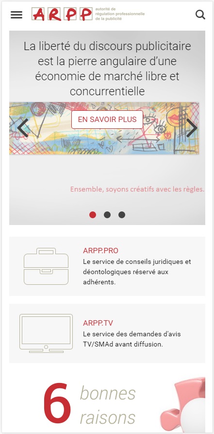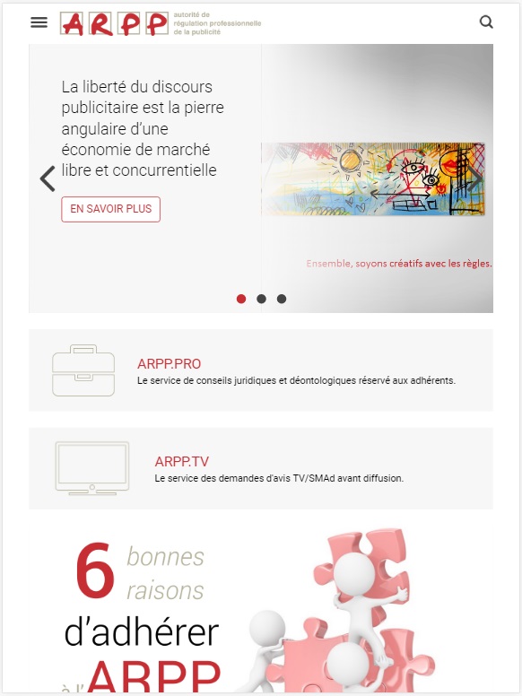 C’est la quatrième transformation des sites de l’ARPP : deux versions pour le BVP en 2002, puis 2004, et la seconde depuis la refondation en juin 2008 de l’Autorité de régulation professionnelle de la publicité et de sa communication en ligne, ainsi que pour ses trois instances associées : le Conseil de l’éthique publicitaire, le Conseil paritaire de la publicité, le Jury de déontologie publicitaire. En 2011, un site mobile et son application ont été associés au JDP.
