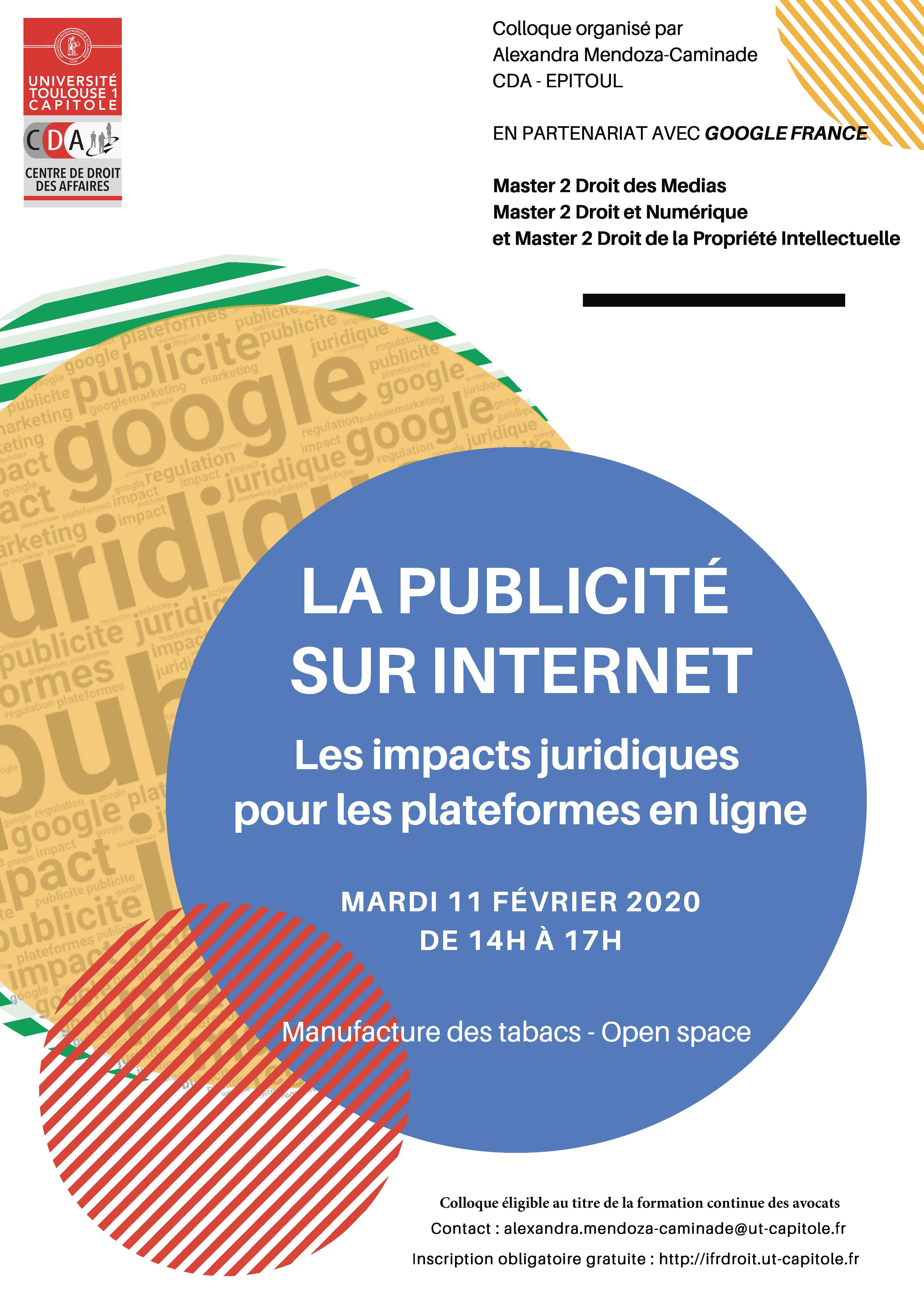 Participation gratuite, sous réserve d’inscription ici : https://www.ut-capitole.fr/recherche/equipes-et-structures/colloques-conferences-seminaires/colloque-epitoul-la-publicite-sur-internet-les-impacts-juridiques-pour-les-plateformes-en-ligne–839020.kjsp?RH=1319185250528